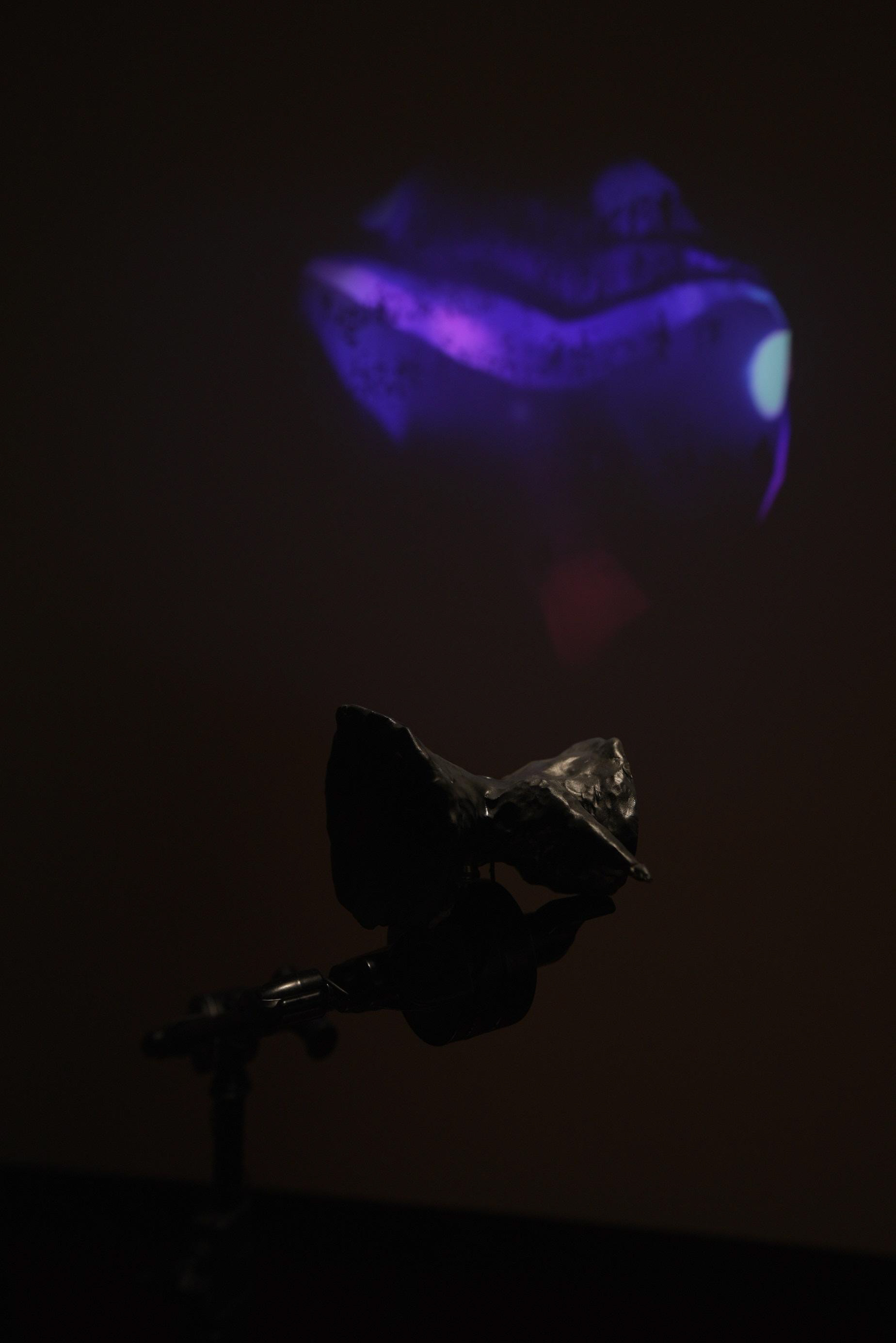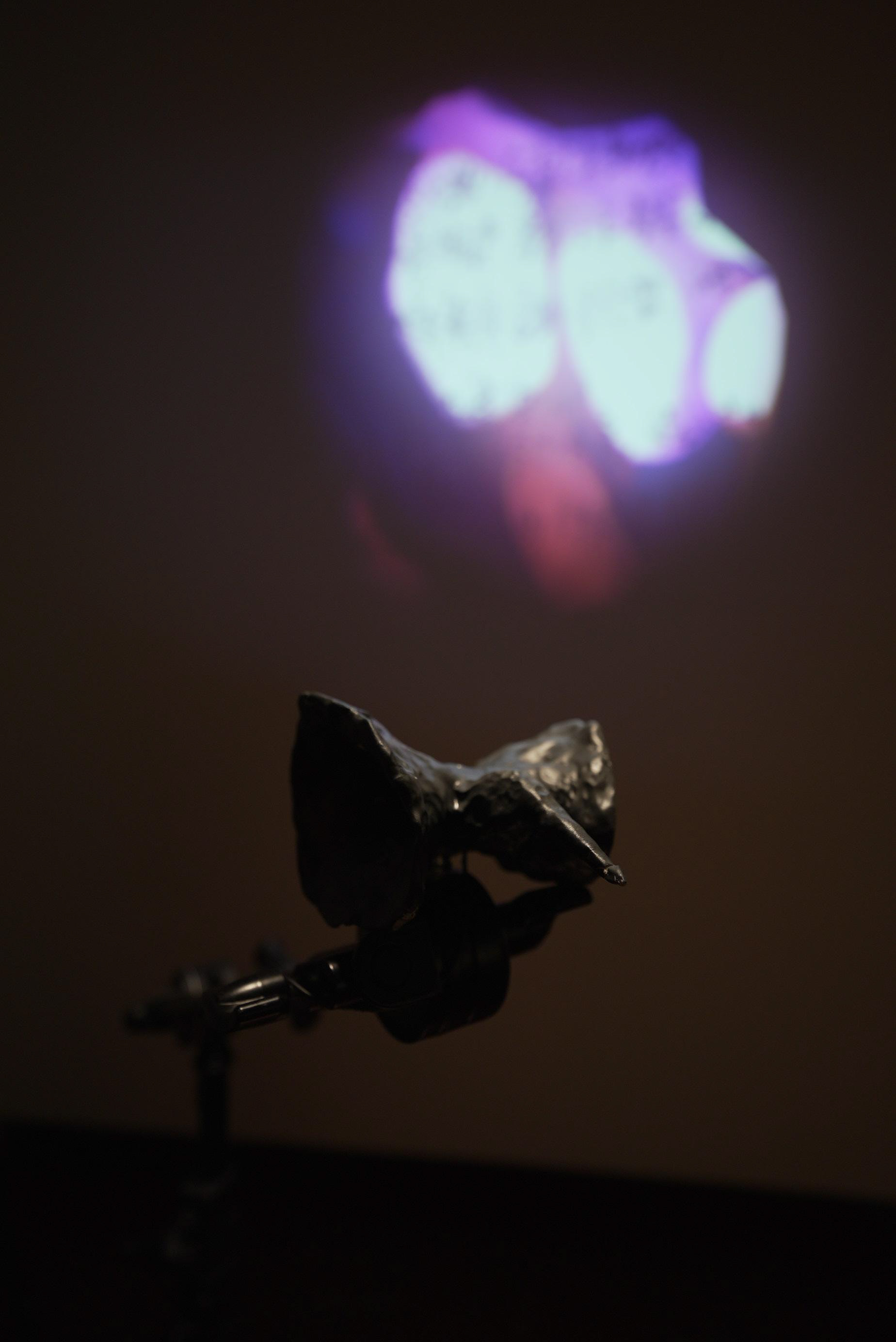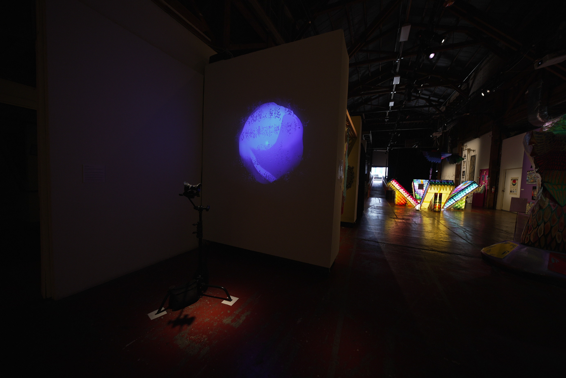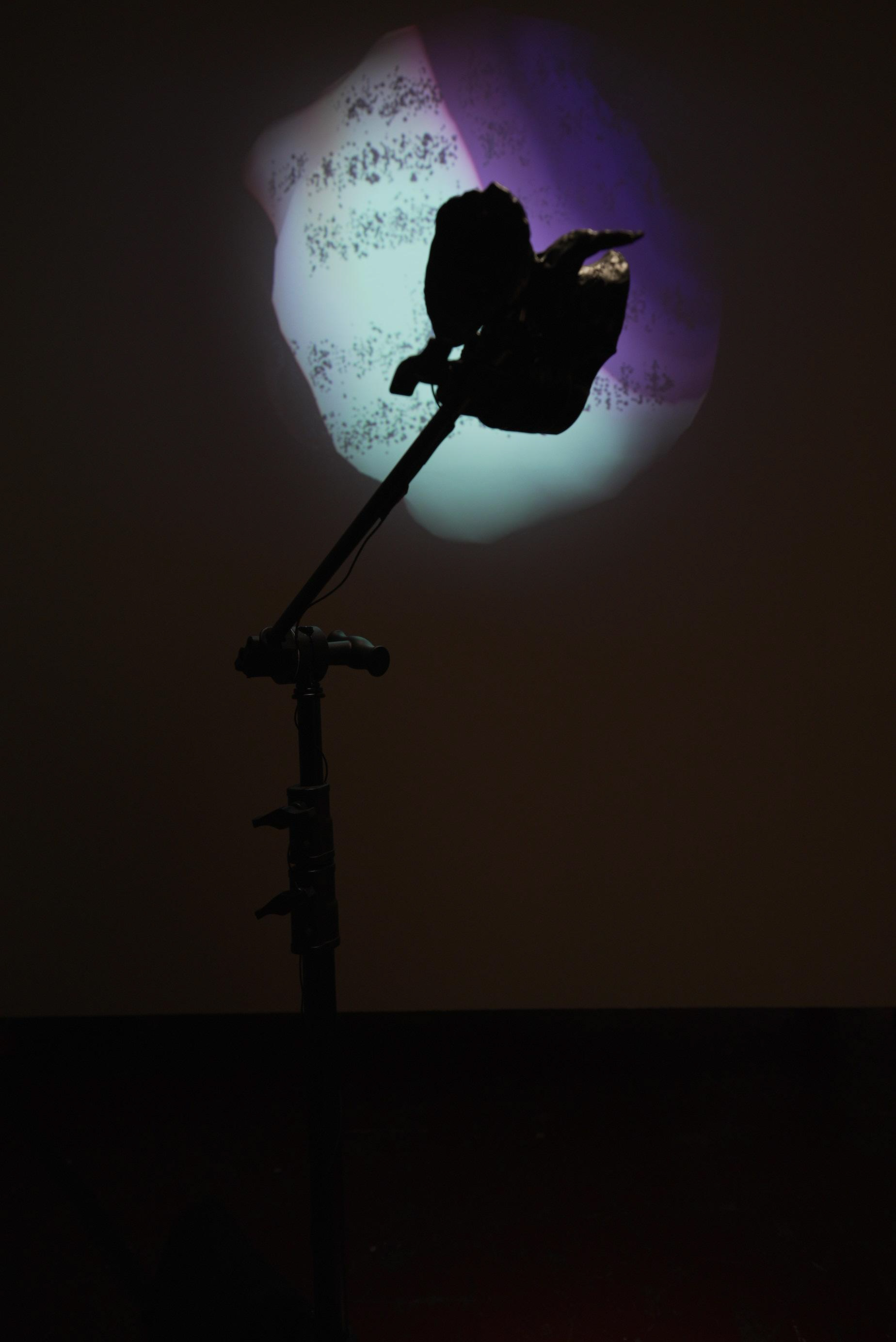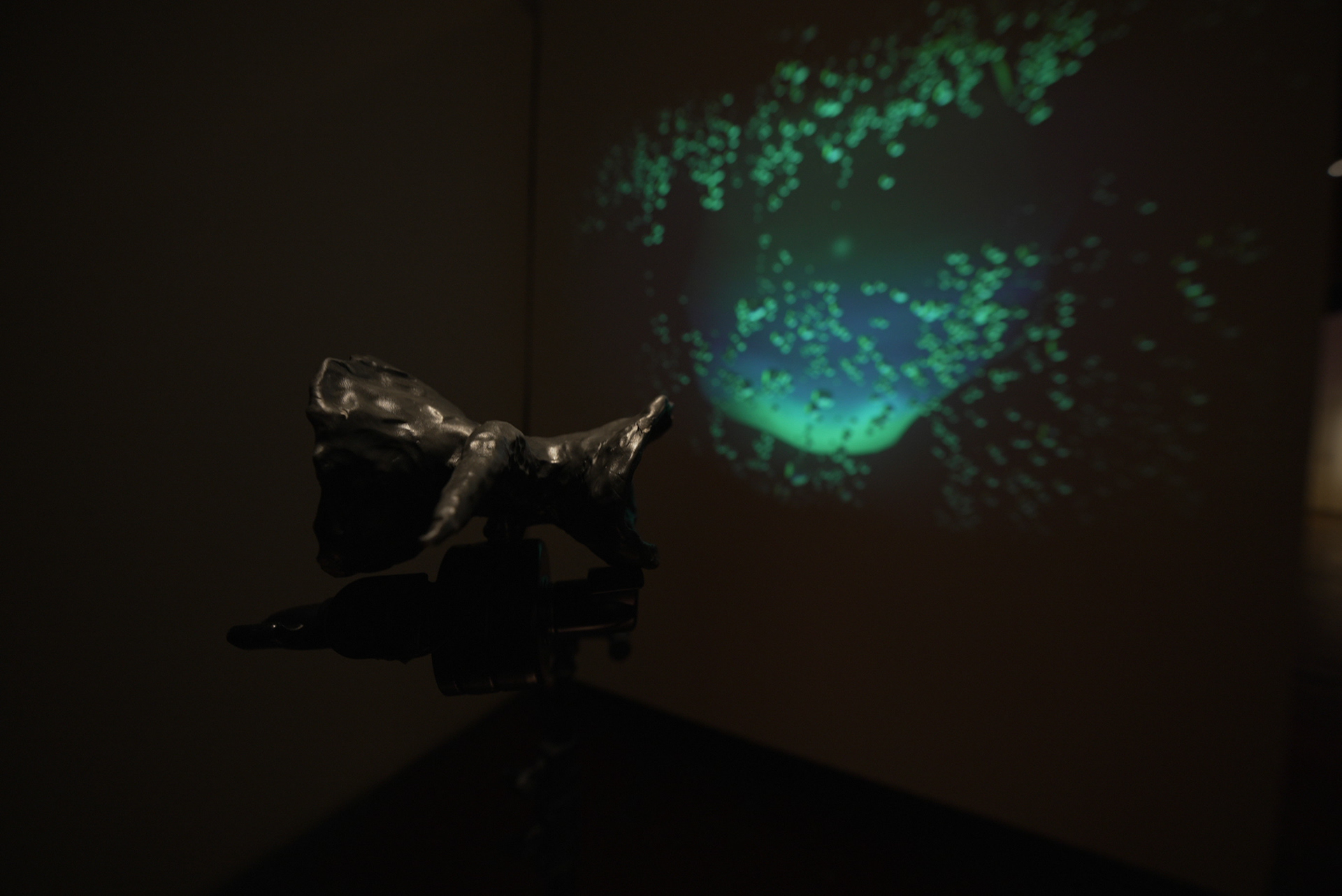 Interactive installation: Clay, microphone, custom software, projection, single channel audio, generative video.