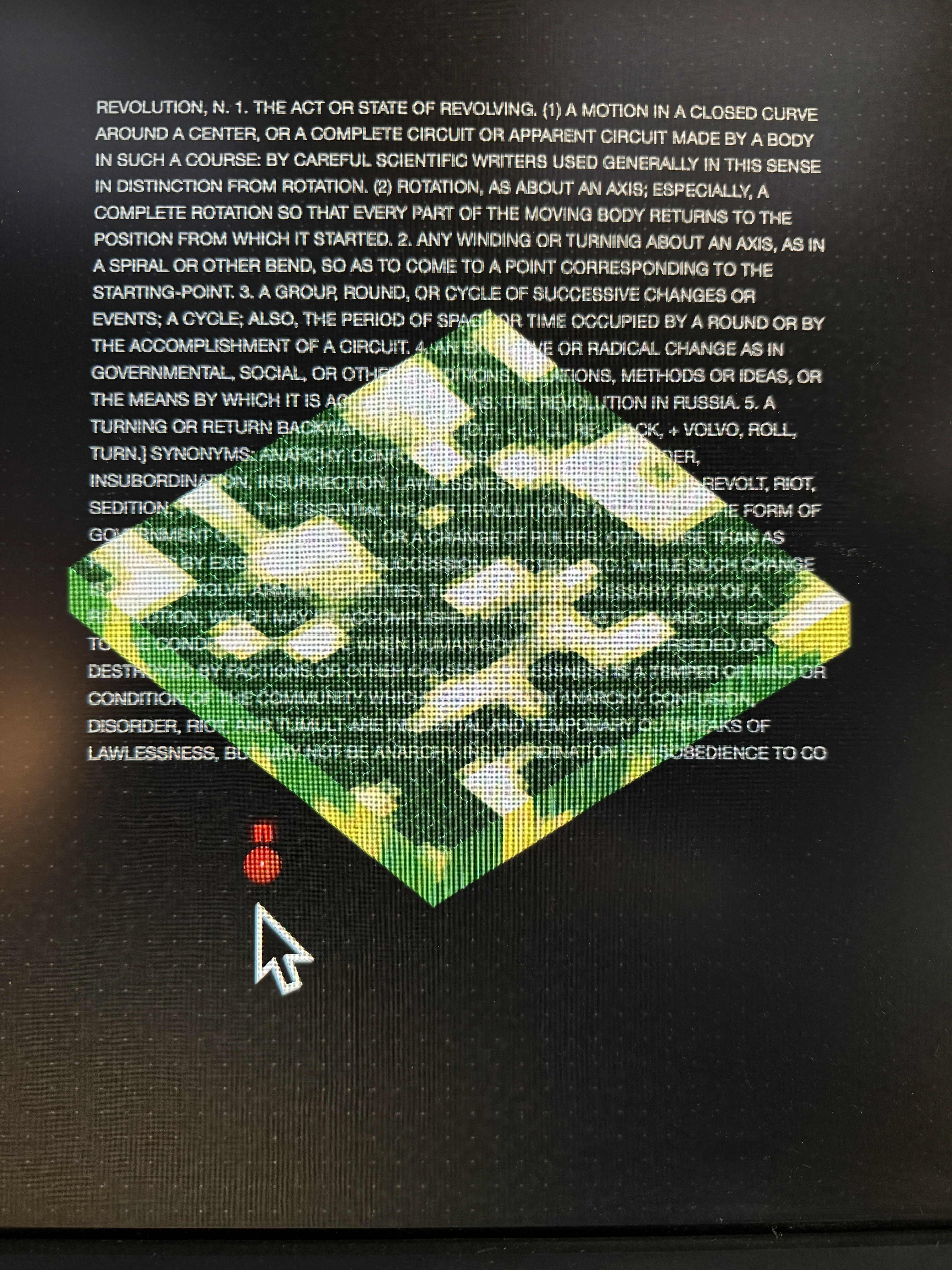 Miguel Novelo’s Máquina Fantasma situates contemporary computing and new media equipment in the longer arc of tools and technologies that human societies have used to perceive and intervene in the world around us. By taking this long view, grounded in an indigenous perspective, he demystifies the spectre of innovation, the chase of profits, and planned obsolescence and its requisite wake of discards.